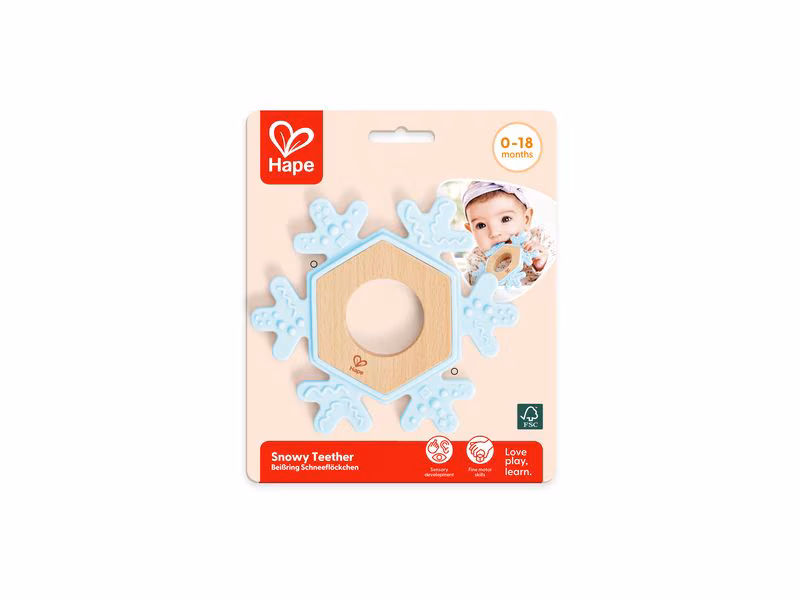 L’anneau de dentition Hape flocon de neige est fabriqué avec des matériaux certifiés sûrs pour les bébés et répond aux normes internationales de sécurité.