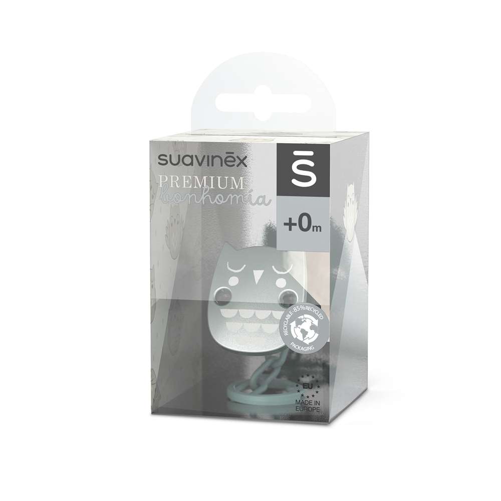 Attache-sucettes en forme de hibou de la collection Suavinex Bonhomía.