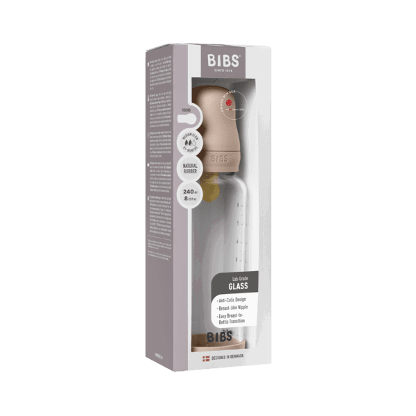 Le Bibs Biberon en verre rond avec tétine en latex débit moyen 240 ml – Rose poudré combine sécurité, confort et élégance pour accompagner chaque repas de bébé.