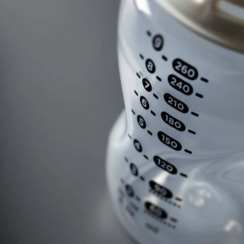 - 100% étanche avec le couvercle : Lorsque la bague à vis, la tétine et le capuchon sont correctement en place, le biberon est totalement étanche, même lorsqu’il est retourné ou secoué.