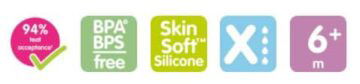 Approuvée par les bébés: 94 % des bébés acceptent la tétine MAM et sa surface SkinSoft™1