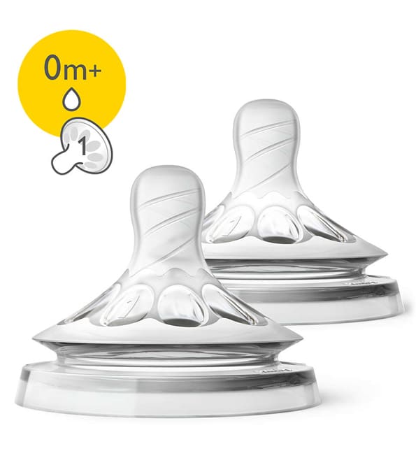 Avent Lot de 2 Tétines Natural 0mois+ (Débit Nouveau né) ultra-douce avec design flexible en spirale présente des caractéristiques plus proches de celles du sein. Sa forme naturelle imitant le sein et ses alvéoles de confort permettent une tétée naturelle et facilitent l’alternance sein/ biberon.