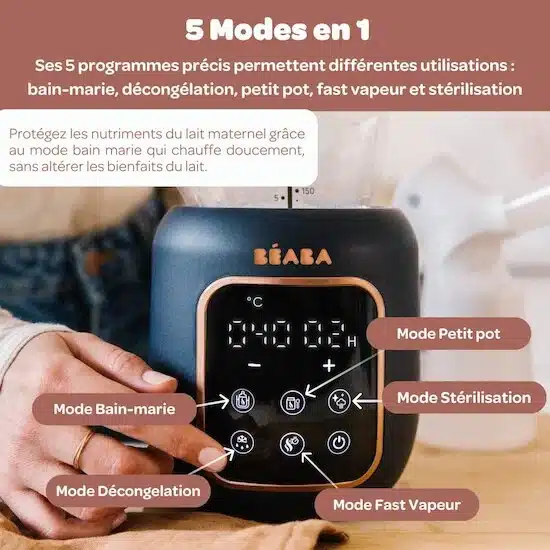 Absolument. Le mode bain-marie préserve les nutriments et la température idéale pour le lait maternel.