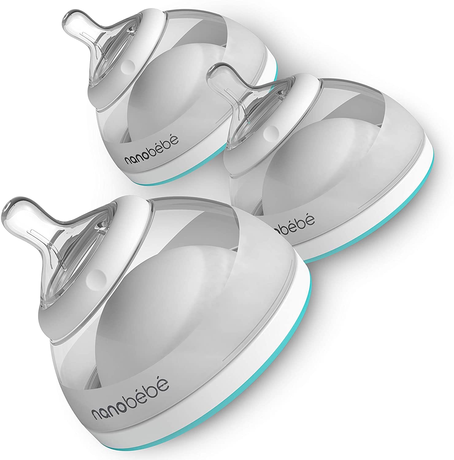 Nanobebe Lot de 3 Biberons d’Allaitement 150 ml conserve les nutriments et réduit le développement bactérien : sa bouteille permet d’étaler le lait maternel en une fine couche qui se refroidit rapidement, atteignant des températures réfrigérées idéales 2 fois plus rapides que les bouteilles standard.