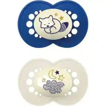 En effet, ce lot de 2 sucettes MAM Original Nuit bleu et blanc dispose d’un