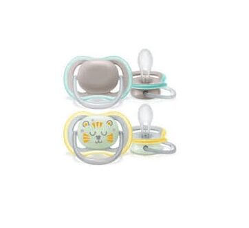 sucettes Ultra Air Night sont conçues pour la nuit. En effet, leur bouclier ajouré laisse la peau respirer et leur détail luminescent permet de les retrouver dans le noir. Ainsi, vous les trouvez en deux tranches d'ùge,