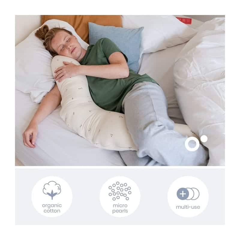Utilisé comme coussin de grossesse, le Twisty soutient les zones sensibles du corps en position allongée ou assise. Il épouse les formes grâce à son rembourrage en microbilles silencieuses et son revêtement en coton organique doux.