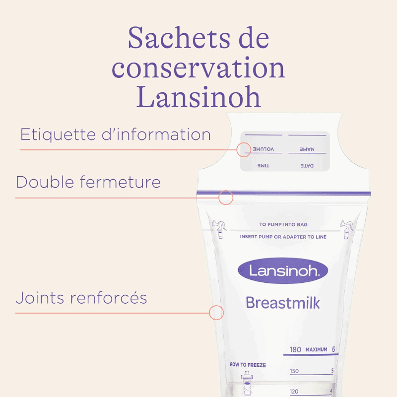 Les sachets de conservation pour lait maternel de Lansinoh sont à usage unique. Ils sont compatibles avec tous les tire-laits de la marque ainsi que la plupart de ceux issus du fabricant Medela.