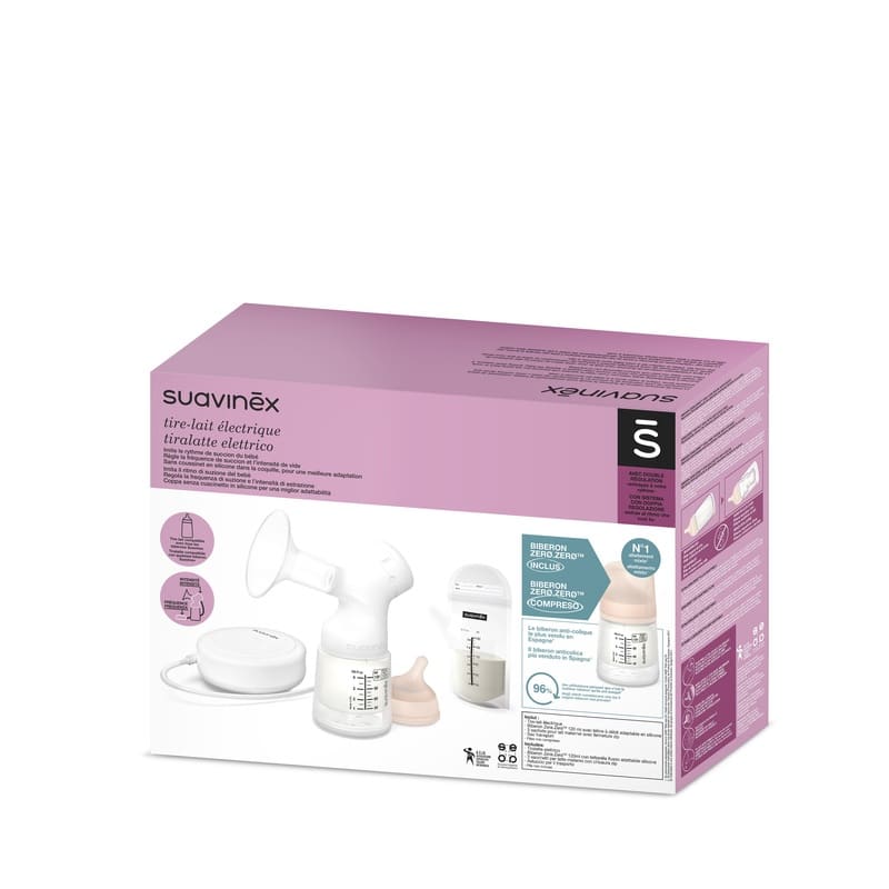 – Tire-Lait électrique Suavinex, extrait le lait maternel rapidement et facilement. Iimite le rythme de succion du bébé.