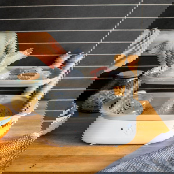 Le préparateur Tommee Tippee PerfectPrep prépare un biberon à la température idéale en moins de 2 minutes. Ainsi, il dose l'eau chaude pour éliminer les bactéries du lait en poudre, puis ajoute de l'eau froide pour atteindre la bonne température. Vous le trouvez en version classique blanche et Jour et Nuit (avec écran rétroéclairé pour les tétées nocturnes). De plus, les filtres de remplacement prolongent la durée de vie de l'appareil.