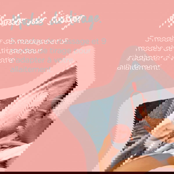 – Il comprend 5 modes massage et 9 modes tirage pour stimuler le débit de lait et tirer le lait efficacement.