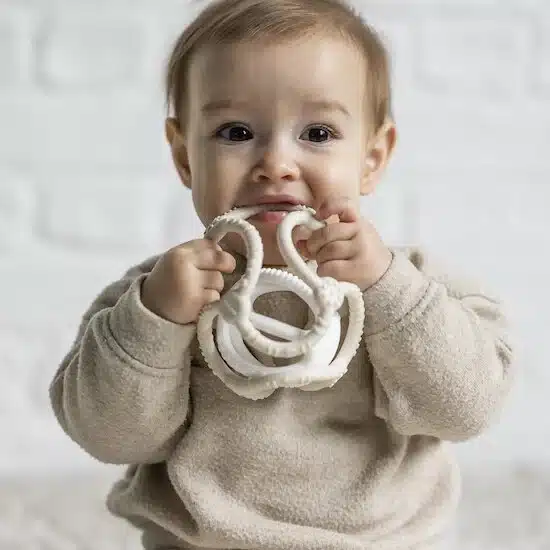 Oui, leur texture souple permet à bébé de les mordiller pour soulager les gencives.