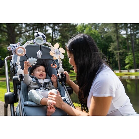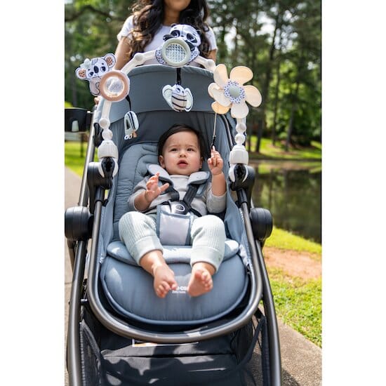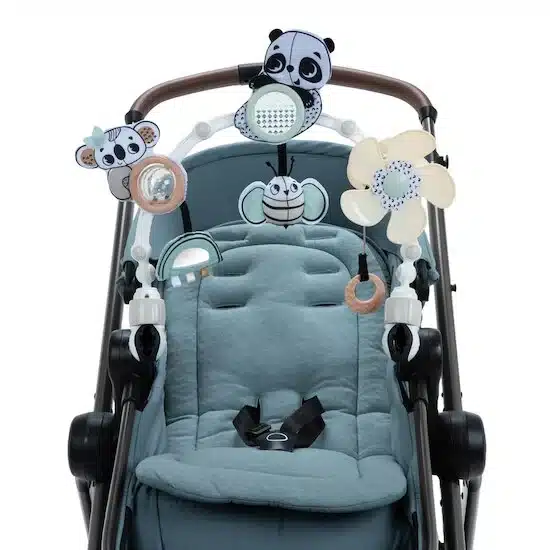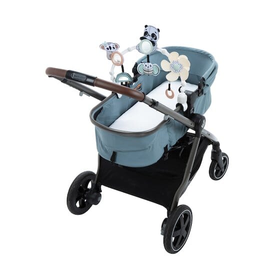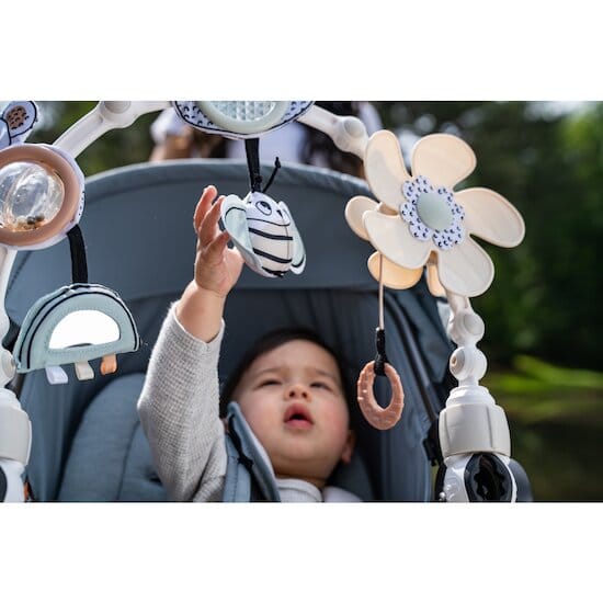 Facile à fixer sur une poussette, un transat ou un cosy, elle transforme chaque moment du quotidien en véritable expérience d’éveil, à la maison comme en promenade.