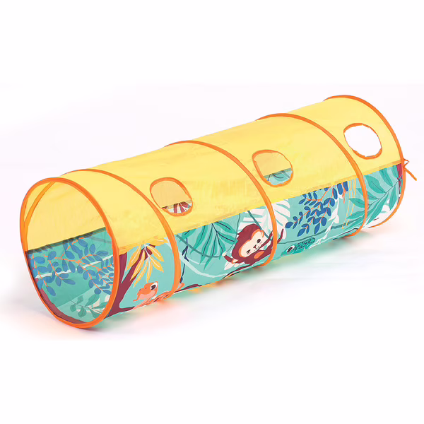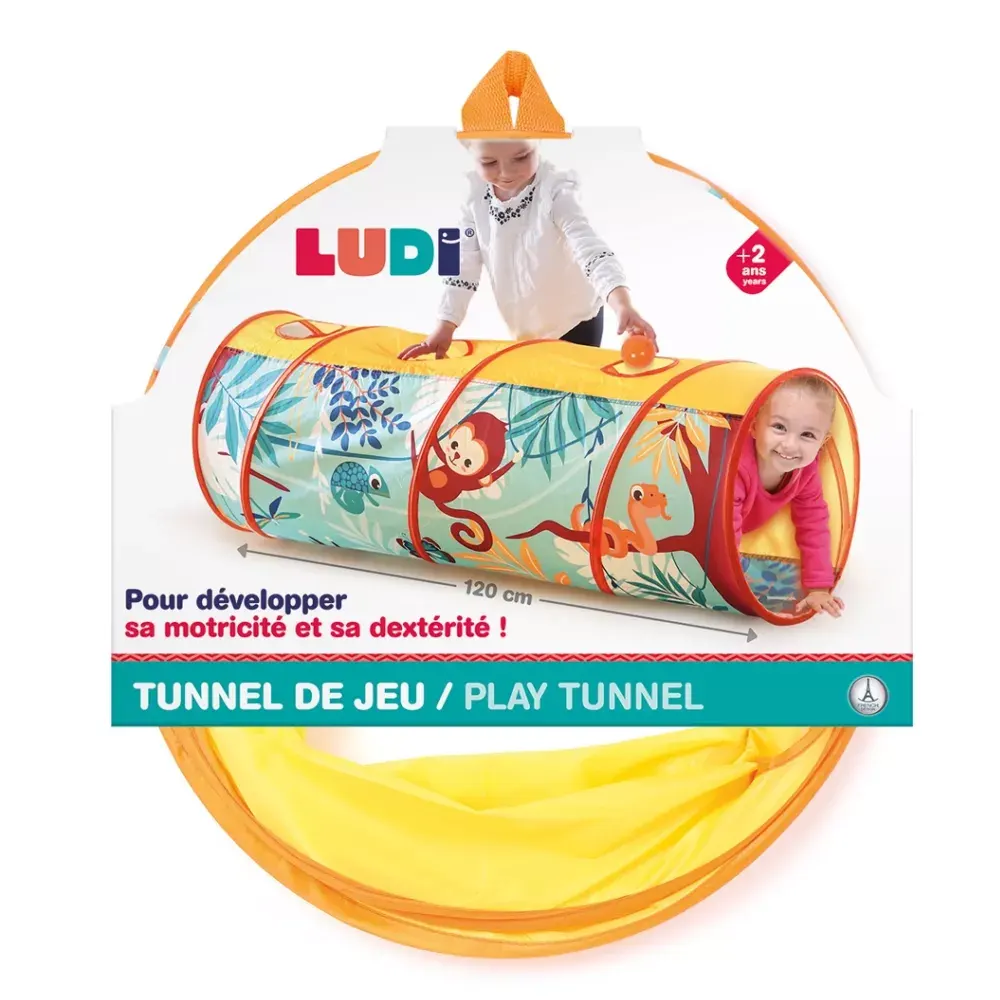 Le Ludi Tunnel de Jeu Jungle invite les enfants dĂšs 2 ans Ă explorer, ramper et sâamuser comme de vrais aventuriers. LĂ©ger, pliable et colorĂ©, il stimule la motricitĂ© et lâimagination tout en garantissant un moment de jeu sĂ©curisĂ©, que ce soit Ă la maison ou dans le jardin.