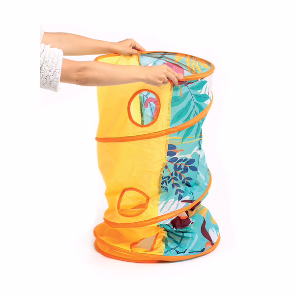 Installez le tunnel sur une surface plane et propre. Laissez votre enfant ramper, se cacher et crĂ©er des histoires pleines dâaventures !