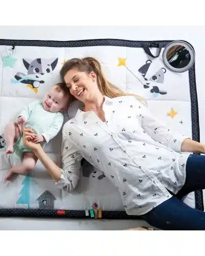 Le tapis d’éveil géant Black & White Tiny Love a été spécialement conçu pour accompagner bébé dès ses premiers jours. Grâce à ses motifs noir et blanc à forts contrastes, il stimule efficacement la vision encore immature du nourrisson tout en lui offrant un espace de jeu spacieux, doux et sécurisé.