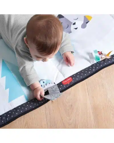 Le tapis d’éveil géant Black & White Tiny Love est utilisable dès la naissance (0m+).