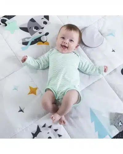 Idéal pour les moments sur le dos, sur le ventre ou les premières roulades, ce tapis d’éveil bébé favorise le développement sensoriel et moteur tout en s’intégrant harmonieusement dans un intérieur moderne.