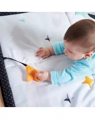 Ce tapis peut être utilisé seul ou en complément d’arches d’activités, de jouets ou de hochets disponibles dans la catégorie