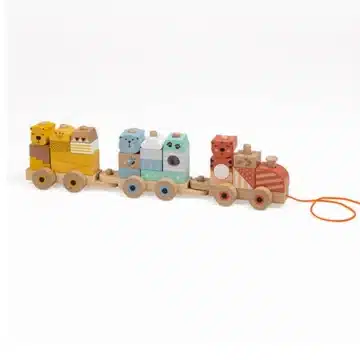 Le train blocs en bois bébé Eurekakids est recommandé dès 18 mois, lorsque l’enfant commence à développer sa motricité fine.