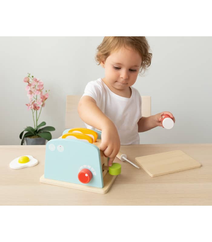 Le grille-pain pour enfants Kiokids s’utilise seul ou avec d’autres jouets d’imitation, comme la cafetière ou le mixeur en bois. En jouant, l’enfant apprend à observer, imiter et interagir, ce qui renforce son langage et sa confiance. Par ailleurs, ce jouet est facile à entretenir et à ranger après chaque utilisation.