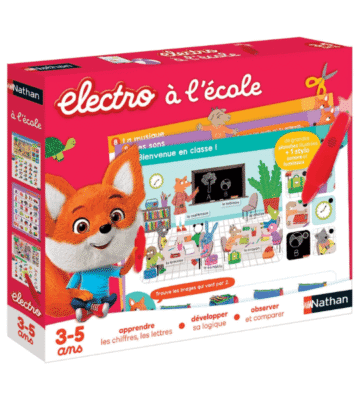1. Un Voyage Interactif à l’École : Nathan Électro à l’ecole 3-5 ans invite les enfants à découvrir les premières notions de l’école de manière interactive et ludique. À travers des jeux éducatifs et des activités sonores, l’enfant explore l’univers scolaire : il y apprend les lettres, les chiffres, les formes, les couleurs, et bien plus encore, tout en jouant.