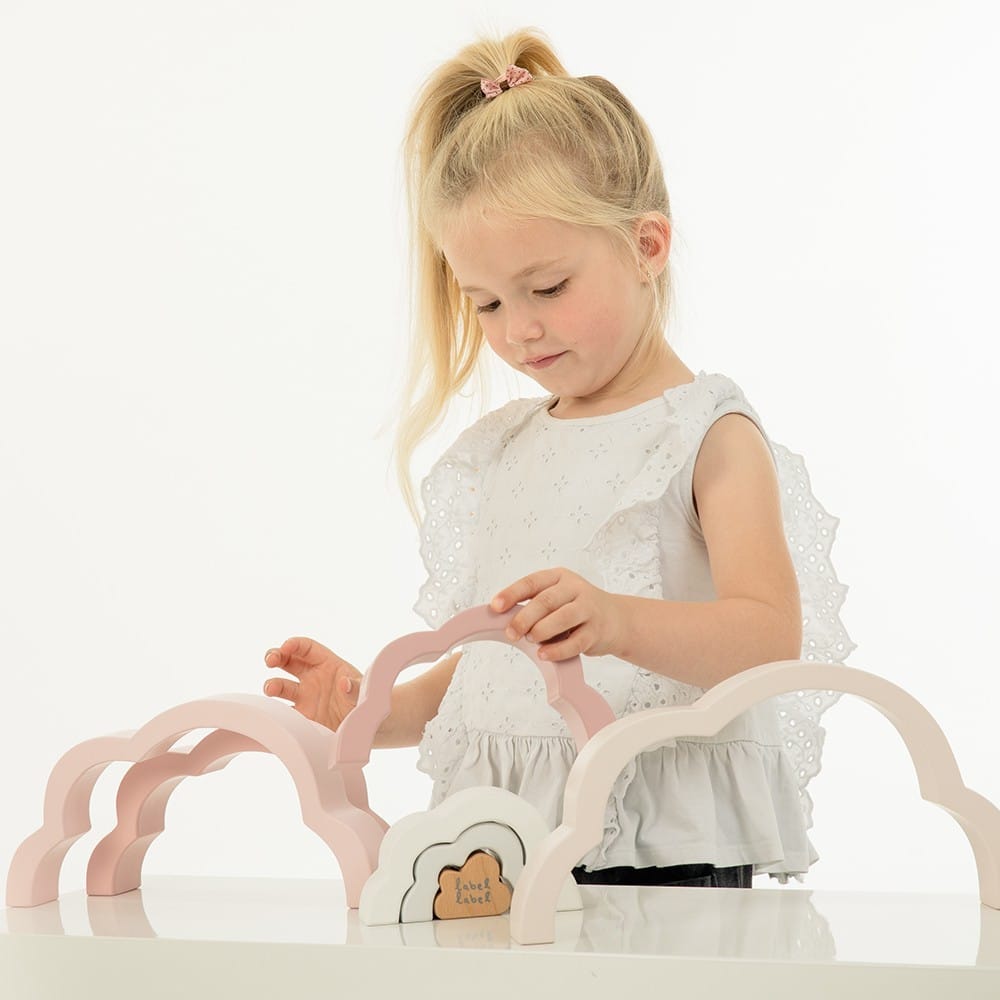 Label Label Arc en ciel puzzle en bois – RoseOffrez à votre enfant un jouet éducatif et créatif avec l’Arc-en-Ciel Puzzle Label Label ! Conçu en bois de haute qualité certifié FSC, cet ensemble coloré de 7 arcs en forme de nuages est idéal pour stimuler l’imagination, la motricité fine et la coordination.