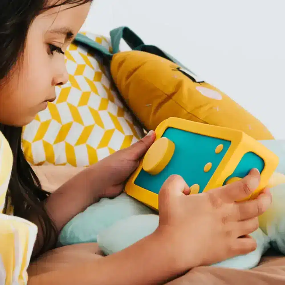 Parfaitement adaptée aux petites mains, la coque Lunii permet à l’enfant de manipuler son conteur d’histoires plus facilement et en toute sécurité. Sa texture antidérapante évite les glissades accidentelles et son design ergonomique assure une prise en main agréable.