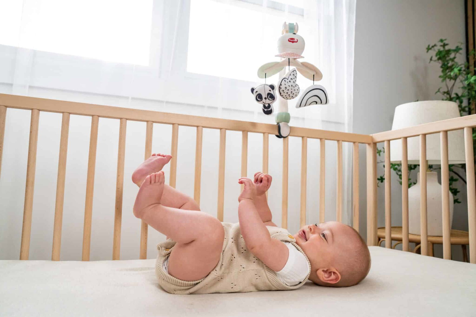 Le mobile Tiny Love se fixe en un clin d’œil sur le lit ou la poussette de votre enfant :