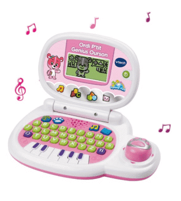 Apprenez en vous amusant avec l'ordi P’tit Genius Ourson de VTech. Activités éducatives, musique, formes, lettres et chiffres pour enfants de 2 à 5 ans.