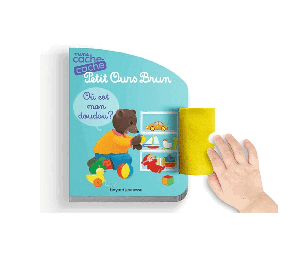 Petit Ours Brun Où est mon doudou ? est un livre Mini cache-cache qui invite l’enfant à chercher le doudou de Petit Ours Brun à travers une histoire simple et rassurante. Ainsi, ce livre cache-cache bébé aide le tout-petit à observer, manipuler et participer activement à la lecture.