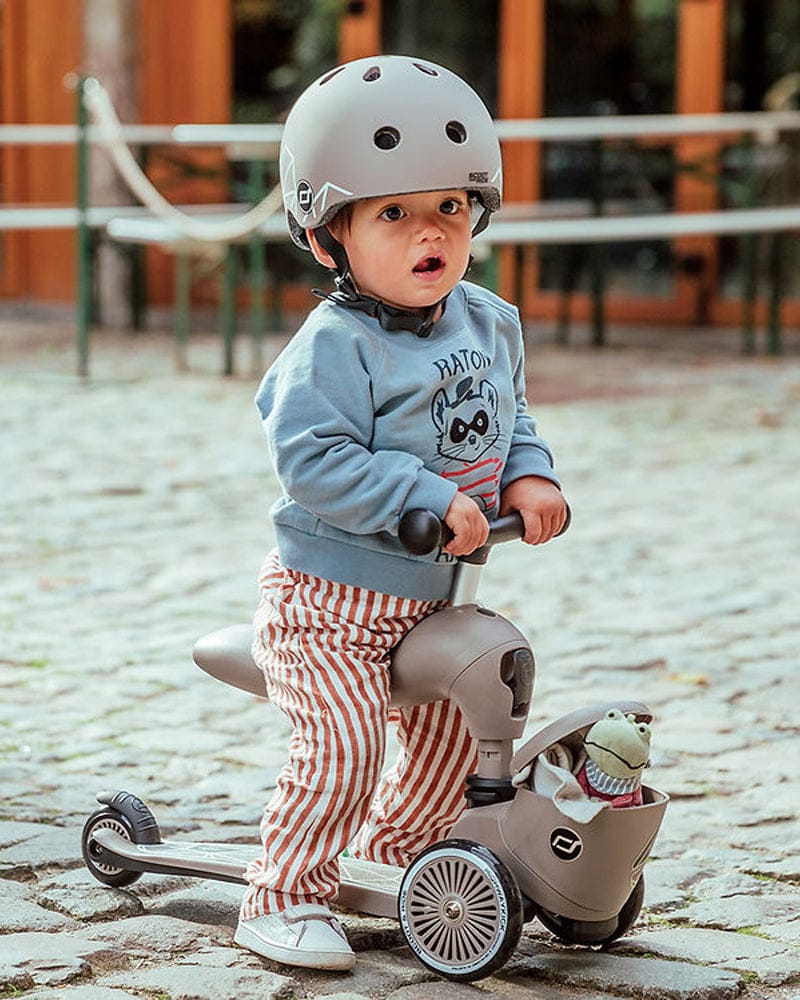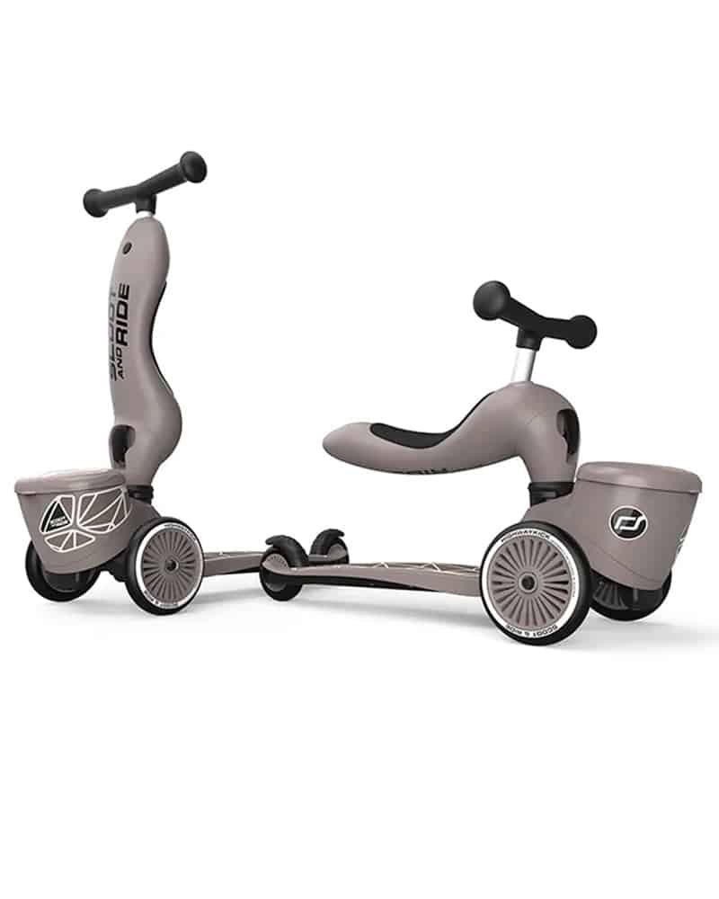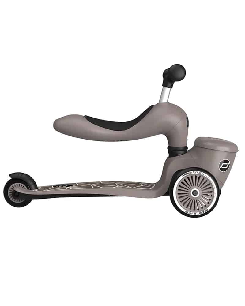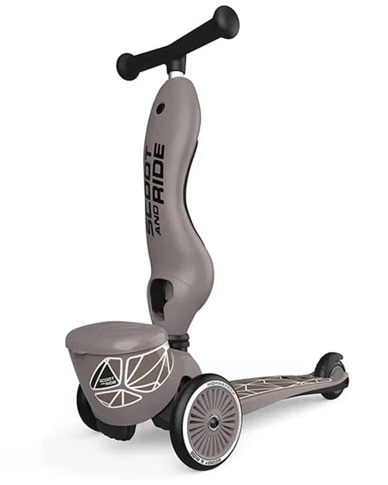 La Scoot And Ride Trottinette 2 en 1 Highwaykick 1 Lifestyle Brown Lines évolue avec votre enfant de 1 à 5 ans. Elle se transforme instantanément de porteur assis à trottinette debout sans outils, pour des balades sûres, fun et adaptées à chaque étape de l’apprentissage.