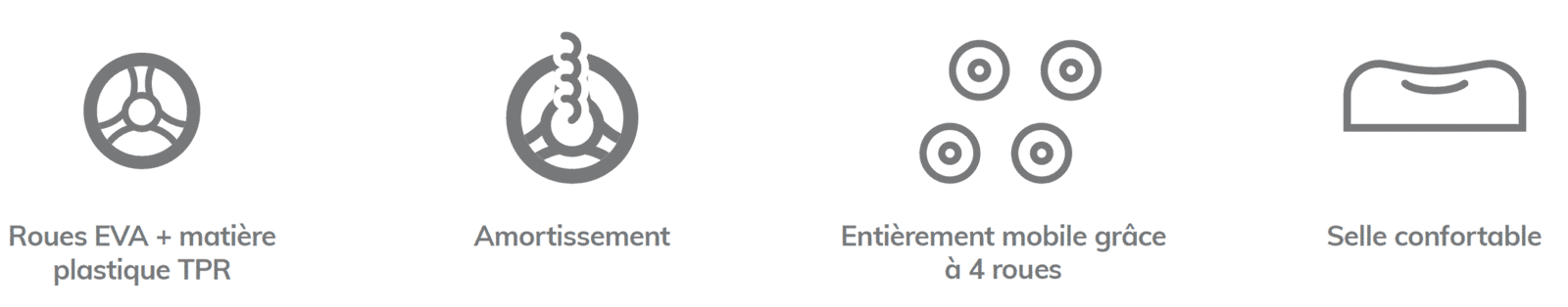 Sécurité Avant Tout: Lionelo Villy est doté de quatre roues robustes, combinant la mousse EVA et le plastique TPR, offrant une adhérence exceptionnelle et une résistance accrue à l’usure. La limitation des virages à 70 degrés empêche les chutes inattendues, assurant ainsi une conduite en toute sécurité pour votre enfant.