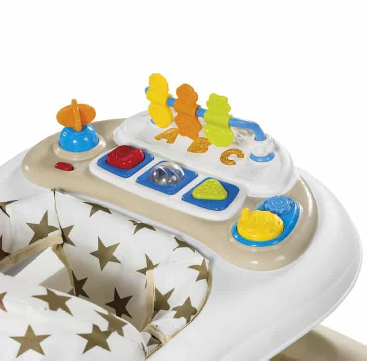 Cet trotteur est doté d’une protection pour ne pas abîmer le cadre des porte et roues de silicone rotatives pour ne pas abîmer le parc.