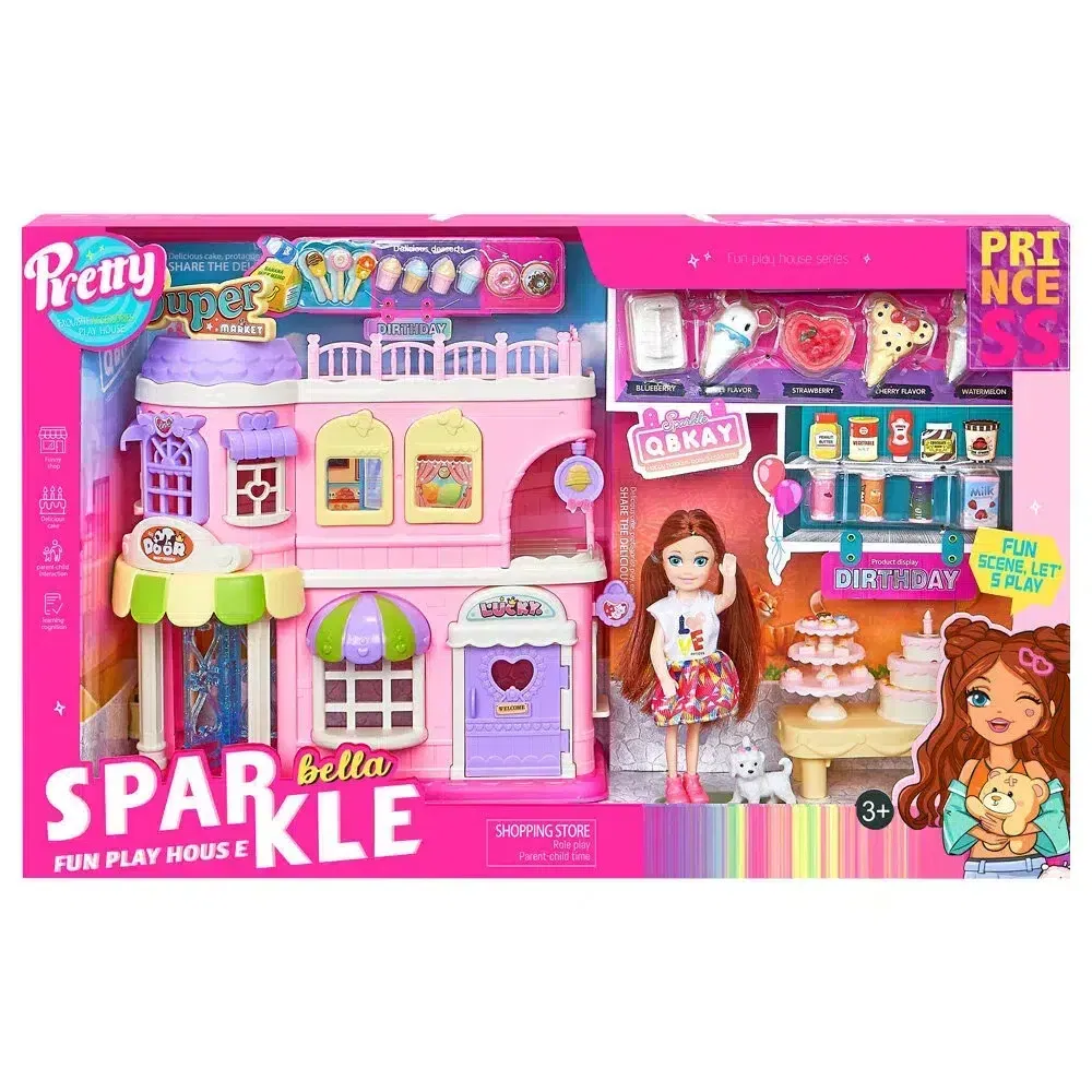 Offrez à votre enfant un univers de jeu magique et créatif avec la maison de jeu « Bella Sparkle ». Ce coffret comprend une maison rose élégante à plusieurs étages, un espace de shopping et de fête, ainsi qu’une adorable poupée Bella accompagnée de nombreux accessoires.
