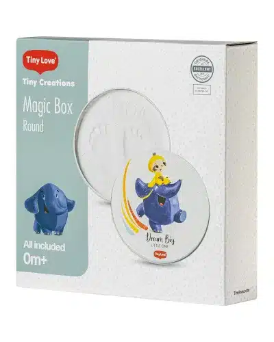 La Tiny Love Magic Box Round est conçue pour permettre aux parents de créer et conserver une empreinte unique de leur bébé dès la naissance.