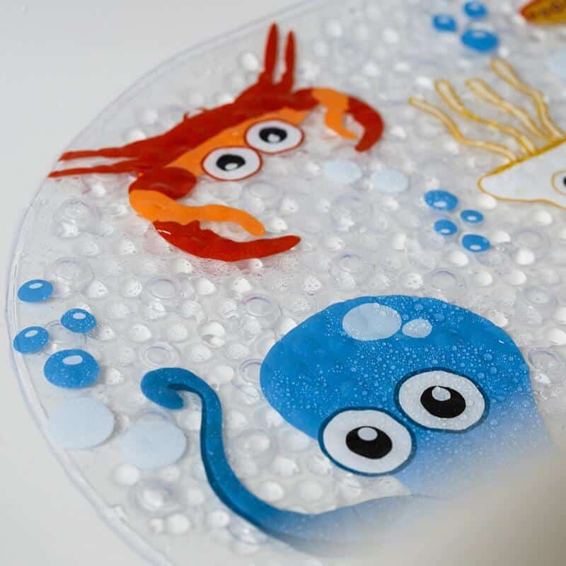 Son motif multicolore attire l’attention des tout-petits et les aide à apprécier l’heure du bain. Le tapis devient un véritable terrain de jeu aquatique !