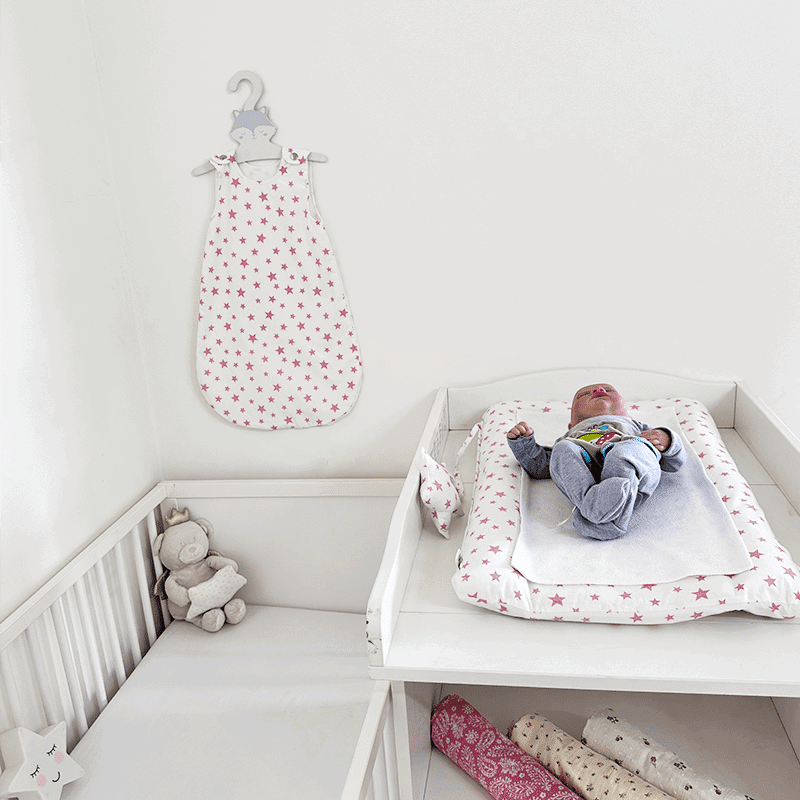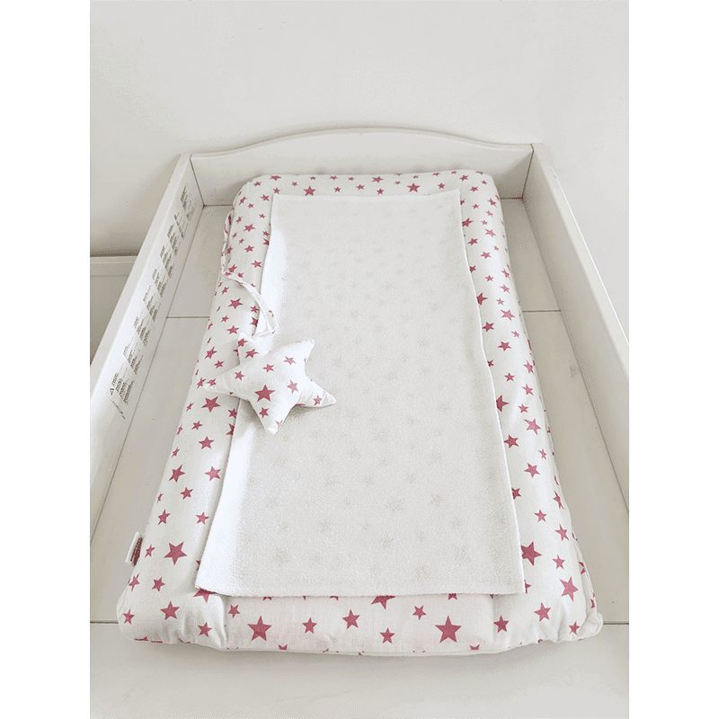 Matelas à langer imperméable avec housse – Etoiles Rose
