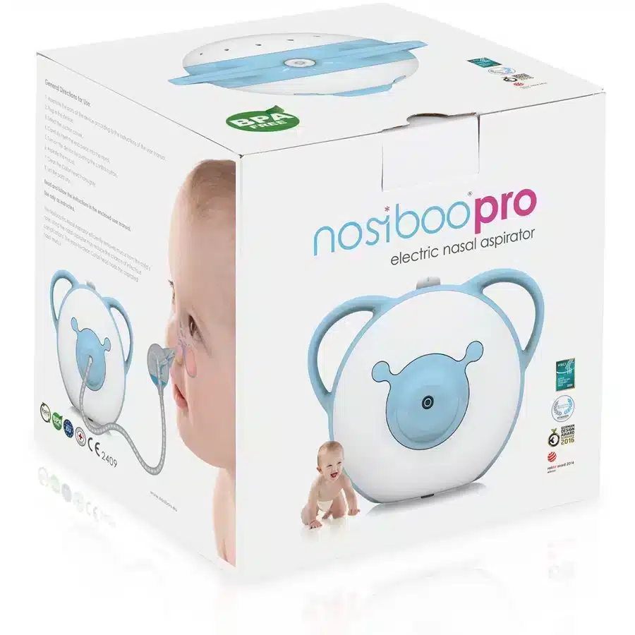 Le mouche-bébé Pro de nosiboo est un produit médical électrique de qualité premium. Ce mouche-bébé aspire les sécrétions nasales très rapidement, efficacement et en douceur du nez d’un enfant.