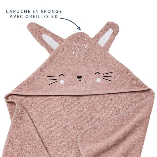 Babycalin Cape de bain ludique 75×75 cm – Lapin rose