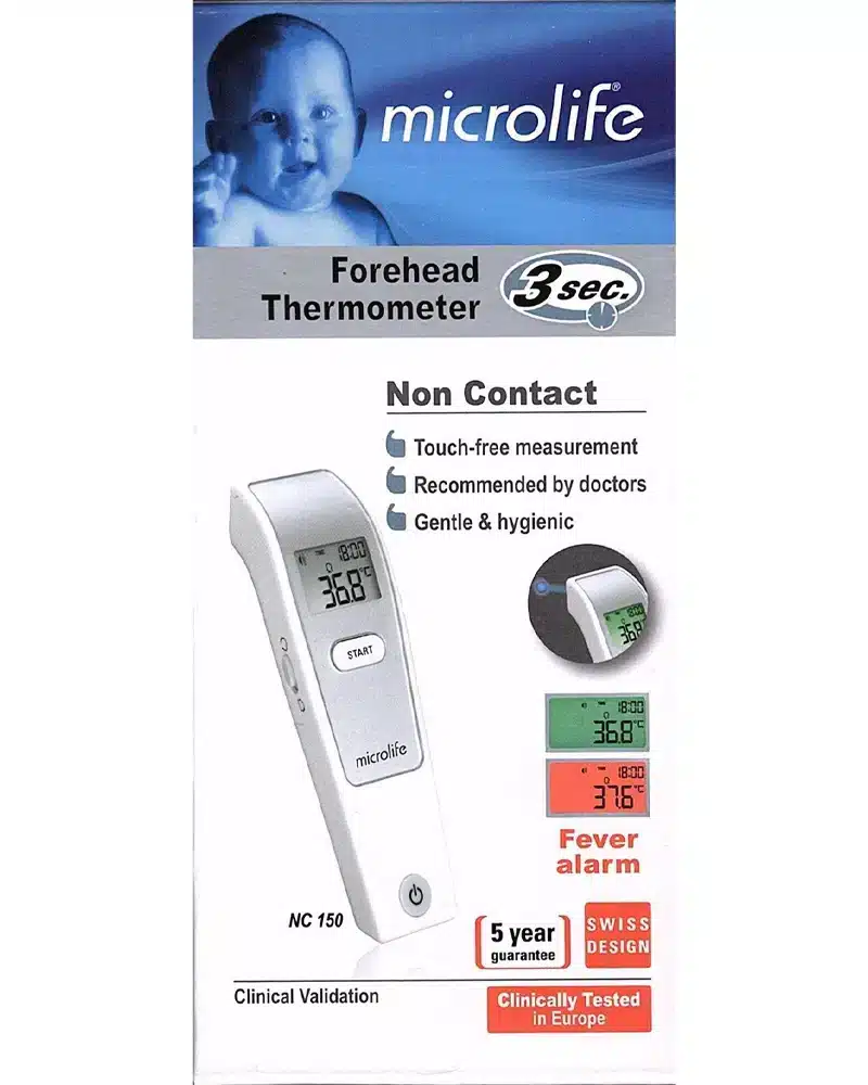 Le thermomètre Microlife NC150, outre sa fiabilité, sa précision et sa facilité de manipulation, permet une mesure douce et non invasive de la température corporelle sans toucher le patient.