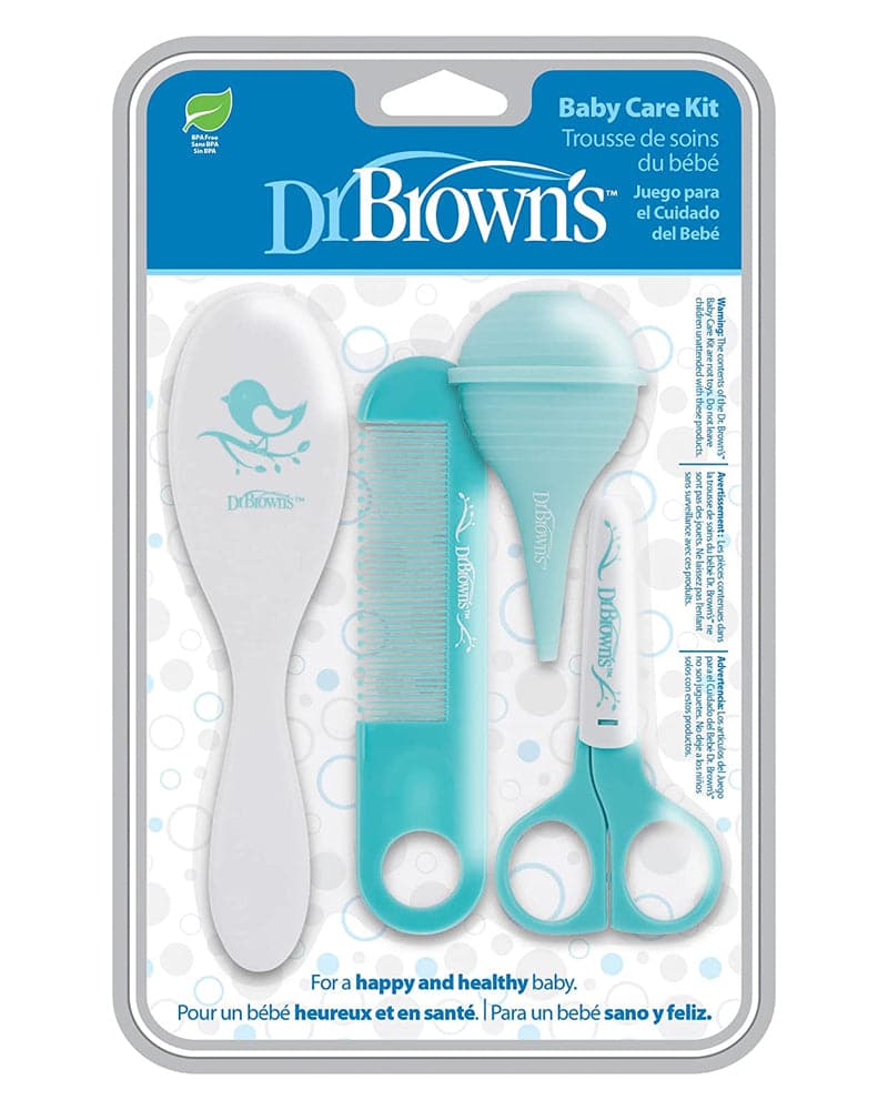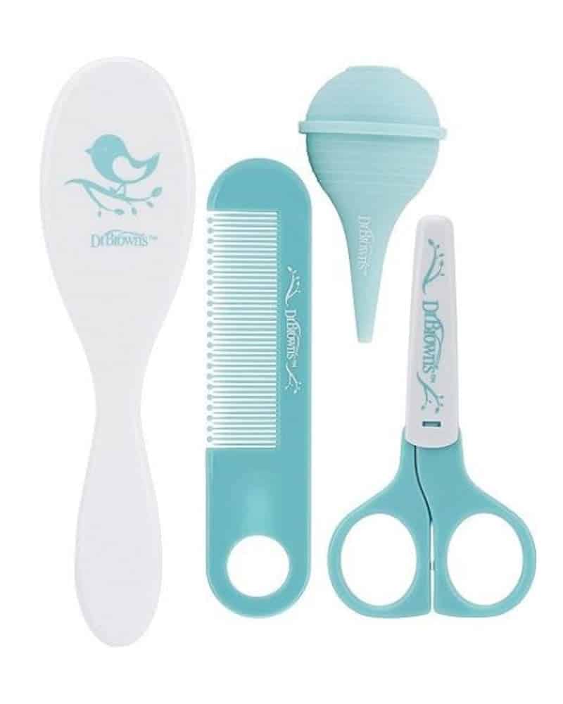 Ensemble complet Dr. Brown’s pour les soins quotidiens de bébé. Inclut 7 instruments essentiels et un boîtier de rangement pratique pour garantir hygiène et sécurité dès la naissance.