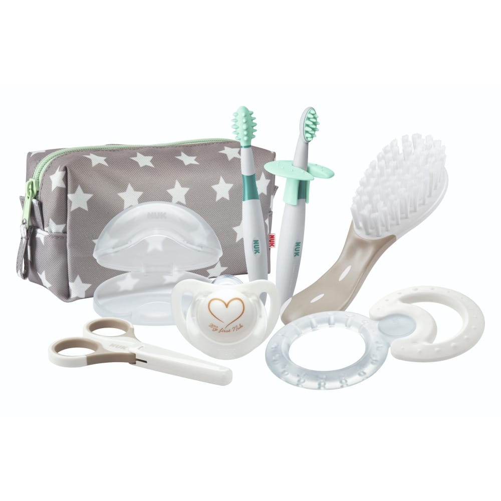 Offrez à votre tout-petit un départ plein de douceur avec la Trousse de soin nouveau-né NUK 👶. Pratique et complète, elle contient tous les indispensables pour prendre soin de bébé dès les premiers jours, à la maison ou en déplacement.