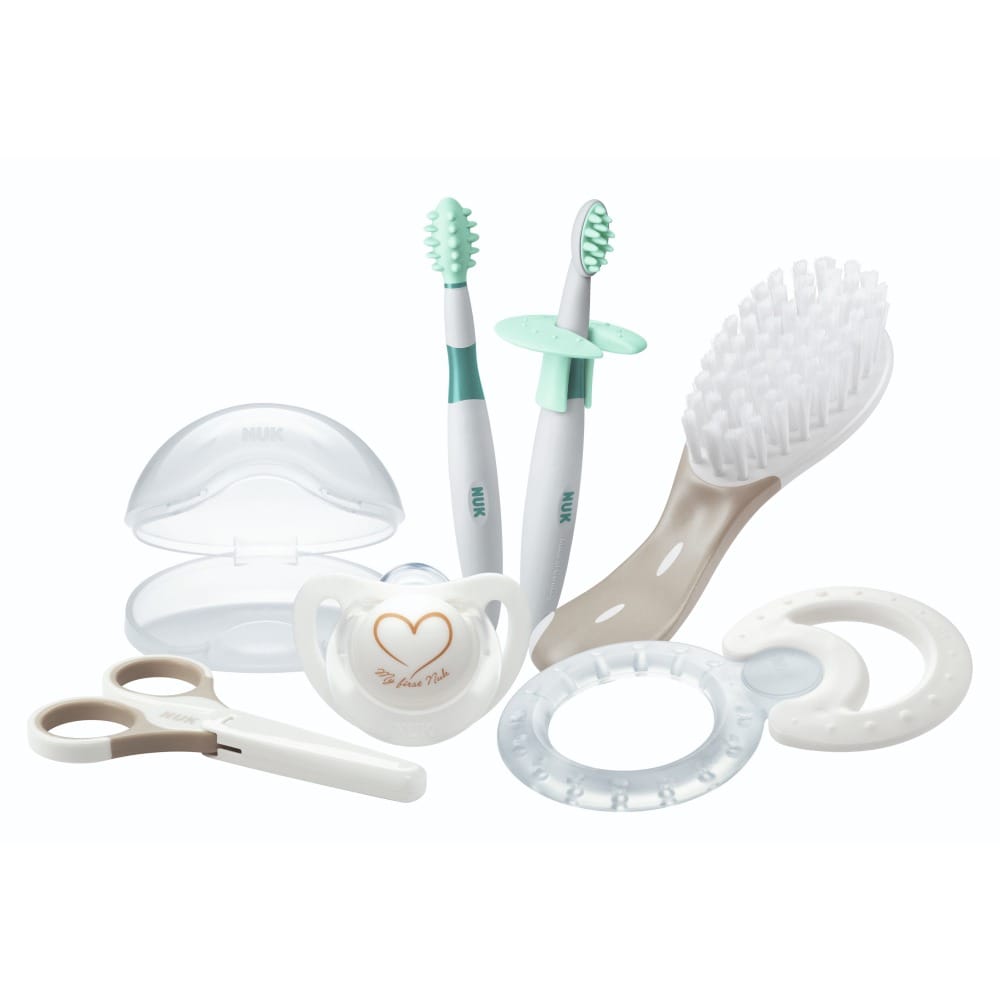 NUK propose également une gamme soin bébé complète. Ainsi, le coffret de soin 5 pièces et la trousse de soin nouveau-né regroupent les essentiels (brosse, peigne, ciseaux, coupe-ongles, thermomètre). De plus, les thermomètres de bain (bleu, rose, gris) assurent la bonne température de l'eau. Enfin, les anneaux de dentition Extra Cool Poisson, Cool All-Around Tortue et Hippocampe soulagent les gencives douloureuses des poussées dentaires.