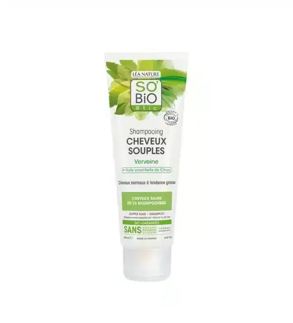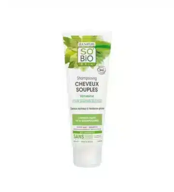 Le Shampooing Cheveux Souples Verveine Bio So’Bio étic est conçu pour apporter souplesse, légèreté et brillance aux cheveux normaux à tendance terne. Sa formule douce à base de verveine bio et d’actifs d’origine naturelle revitalise la fibre capillaire tout en respectant l’équilibre du cuir chevelu.