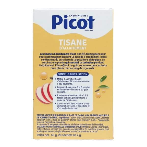- Nom produit : Picot Tisane d’Allaitement Bio – Saveur Pomme Miel