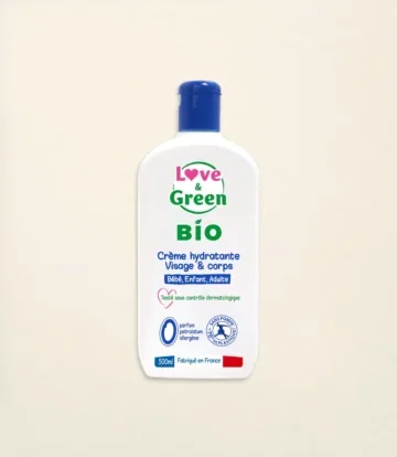 Avec la Love & Green Crème Hydratante Visage et Corps Bio 500ml, offrez à votre bébé un soin naturel, sûr et efficace. Hydratation, apaisement et respect de la peau fragile : tout est réuni pour prendre soin de votre enfant au quotidien.