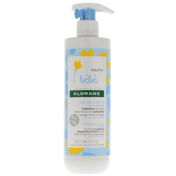 Klorane Bébé Lait de toilette protecteur 500ml sans rinçage nettoie efficacement et en douceur grâce à sa composition majoritairement d’origine naturelle (à 97%).