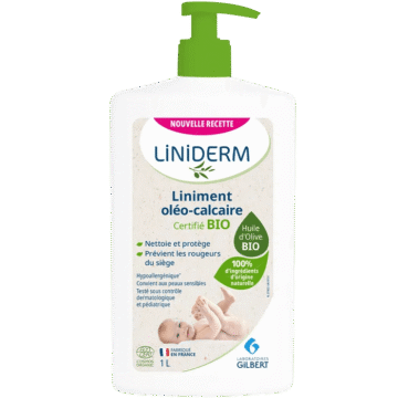 Excellent liniment ! Très doux pour la peau de bébé, nettoie efficacement et prévient bien les irritations. Le format 1L avec pompe est super pratique. Je recommande !
