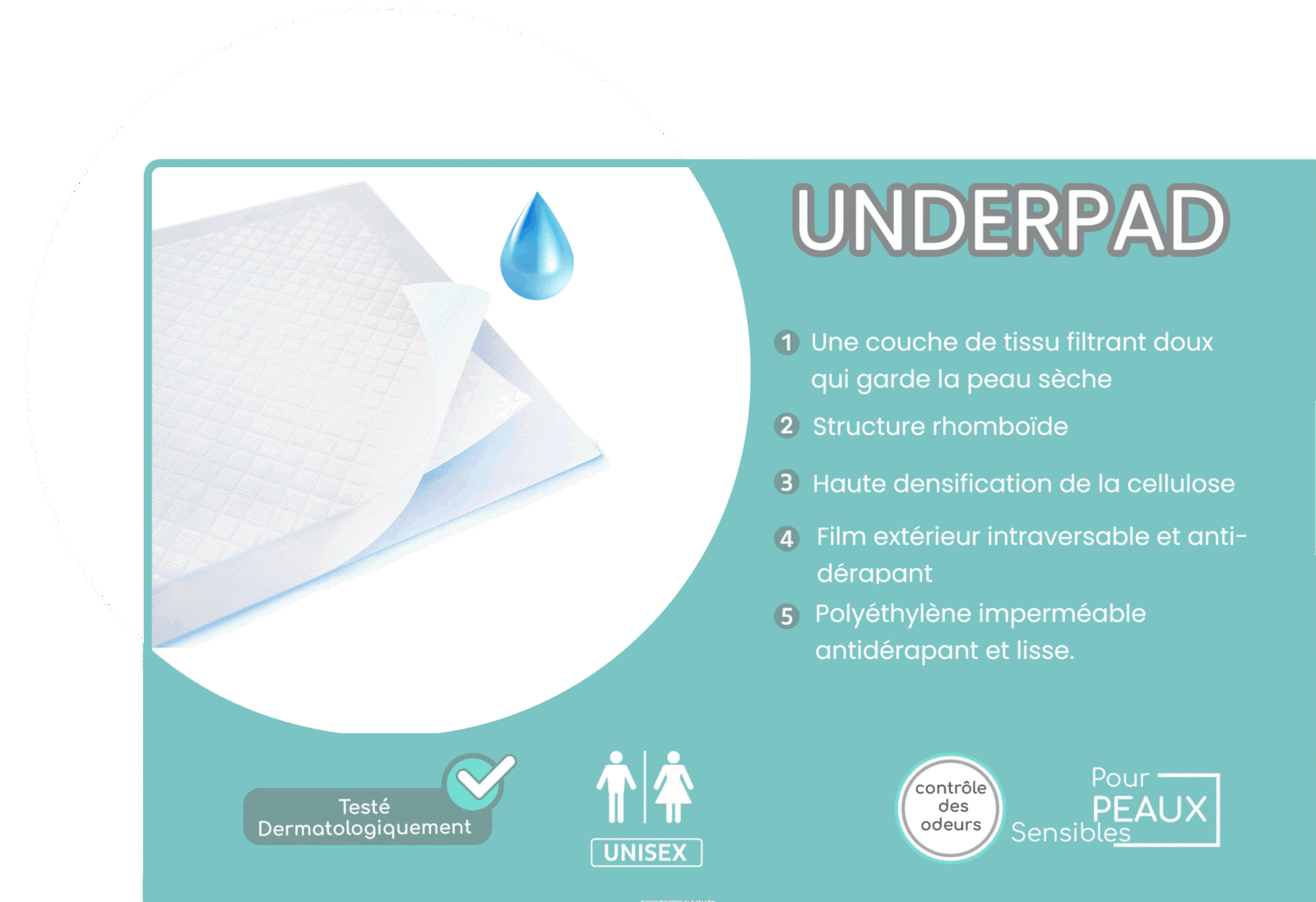 - ✅ **Coussin absorbant de grande capacité** qui retient les liquides.*